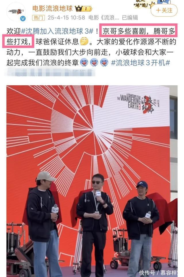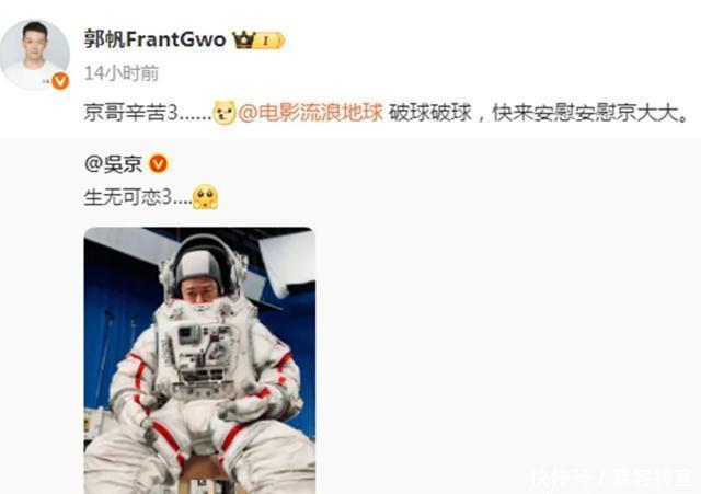 吴京“生无可恋”背后:刘培强纪念,宇航服升级 吴京的“生无可恋3…”案牍,飞快引来了《流浪地球》系列导演郭帆的互动。 郭帆转发并“安危”谈:“京哥隔断3……破球破球,快来安危安危……”这番真谛横生的对话,不仅展现了剧组主创之间的融洽联系,更坐实了吴京在《流浪地球3》中的中枢肠位。