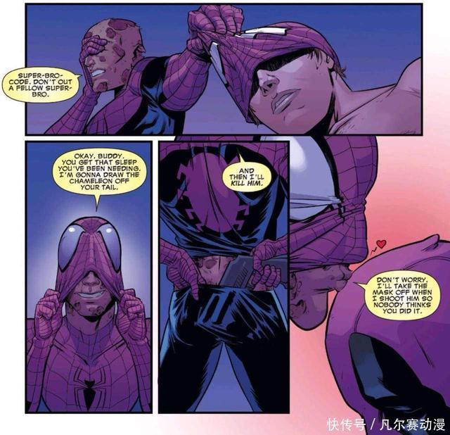 蜘蛛侠和金刚狼不一样,死侍是别称荡子,在情场上闲适不羁,无论是黑寡妇如故魅魔,就算是牺牲女神他皆照吃不误。而死侍很少会对男性变装抒发出访佛的情感,这也解说了死侍不是一个“同道”。但万事无实足,死侍偏巧就对蜘蛛侠有着特别不一般的情感,说是爱也好,说是喜欢也好,死侍我方皆搞不懂他对蜘蛛侠的情感是什么形态的。