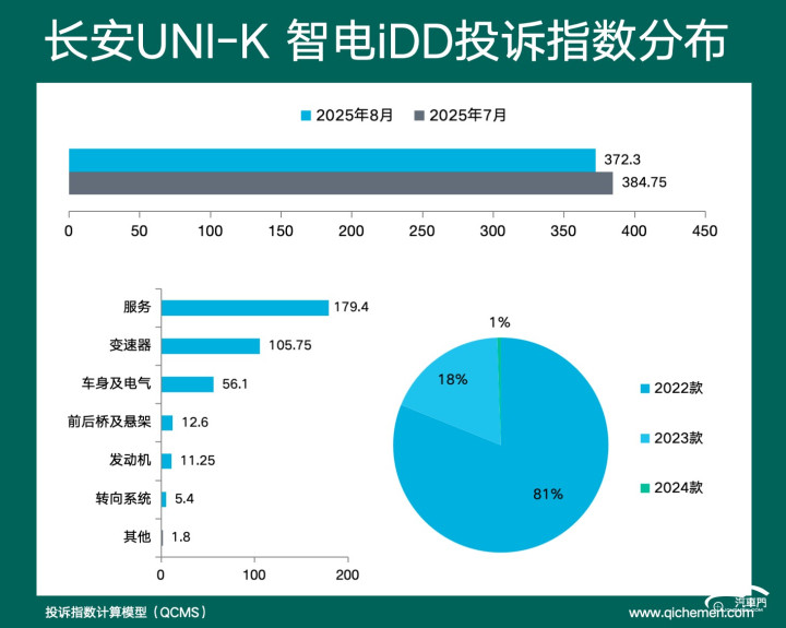 第三名:长安UNI-K 智电iDD 投诉指数372.3