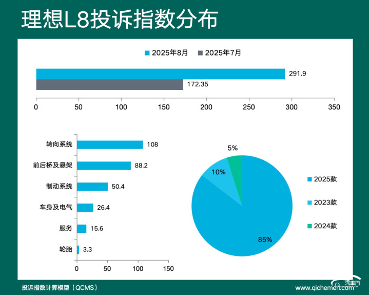 近日,汽车门网发布2025年8月车型投诉指数榜单。刨除小鹏汽车,本月车型投诉榜单被红旗、理念念、长安三家占据,其中红旗、长安均因车机问题上榜,红旗天然更换了车型但依旧占据榜首,长安汽车长安UNI-K智电iDD等车型位置则相对靠后。理念念汽车的L6、L7、L8三款主力车型则一说念上榜,底盘异响、下摆臂异响依然成为其众车型的通病ky体育官网登录入口网页版,许多出当今刚出厂不久的新车上,并且该问题能记忆到理念念首款车型理念念ONE上,大致是千里积多年的设想残障。