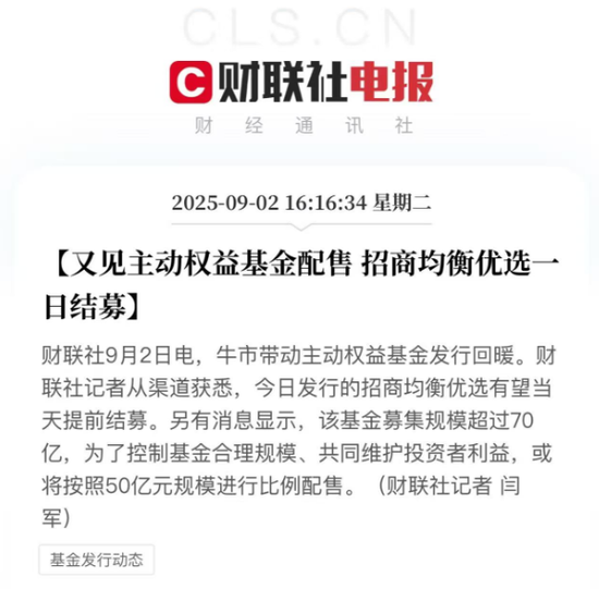 然而我看了看,今天计划相比多的是又有新基金一日售罄且比例配售了:招商基金的新基金招商平衡优选基金,名额50亿。
