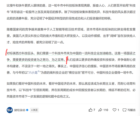 《财经》杂志发表驳斥:以“科技牛”引颈新周期。