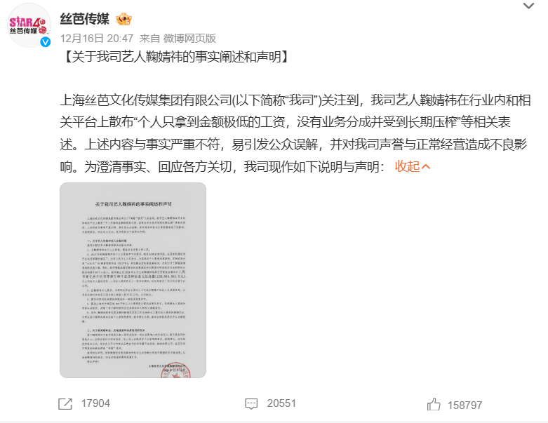 也因此,丝芭传媒也面临揭露其剿袭“9:1分红”(艺东谈主仅10%)、20年合约被批“内娱缅北条件”等负面响应。
