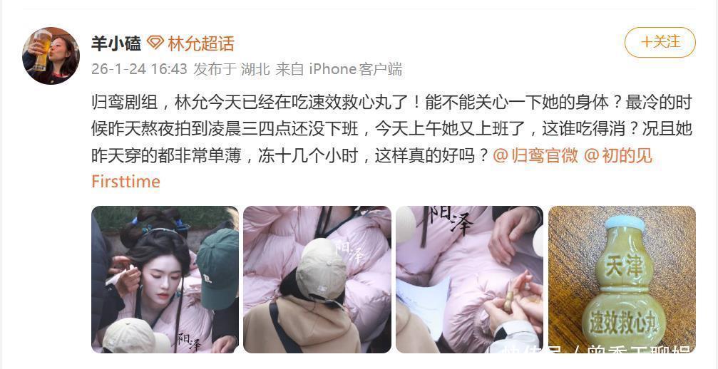 据1月24日网友爆料,一则对于演员林允在《归鸾》剧组拍摄技巧被目睹服用速效救心丸的音讯,赶紧燃烧了网友对艺东说念主责任强度与剧组责罚形态的强烈争论。