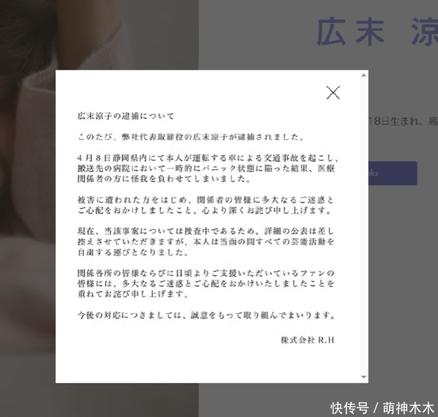 随后,广末凉子所属事务所官网发布声明,阐述了广末凉子被捕这一事实。声明中暗意广末凉子到病院后因为战栗以致医疗东谈主员受伤:“给受害的诸君以及有关东谈主员带来了很大的费事,我从心底暗意歉意。现在该案件正在访问中,暂不公布扫视情况,但现在将罢手一切演艺行为。”。