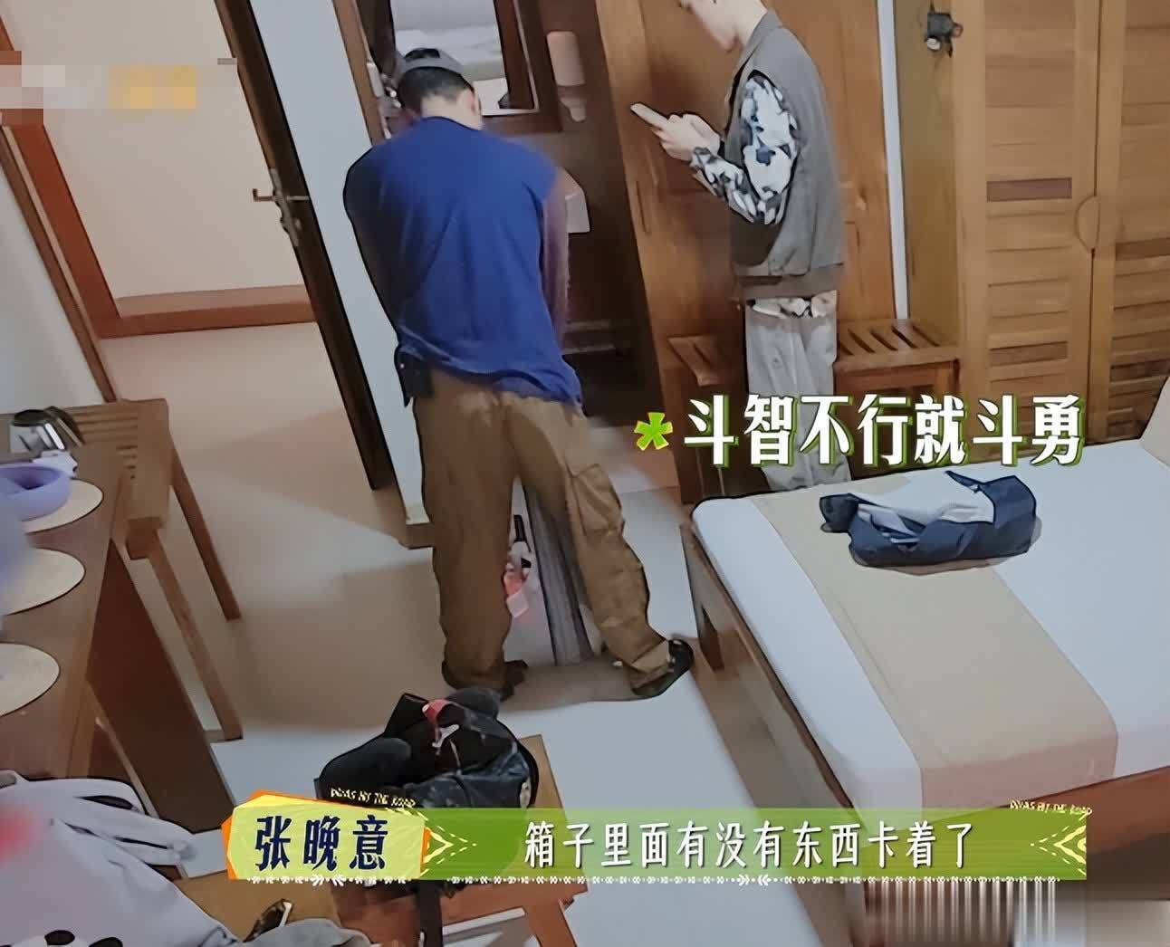 张晚意一提龚俊的行李箱,就从这凑合贫穷的姿势里,能看出箱子有多重。