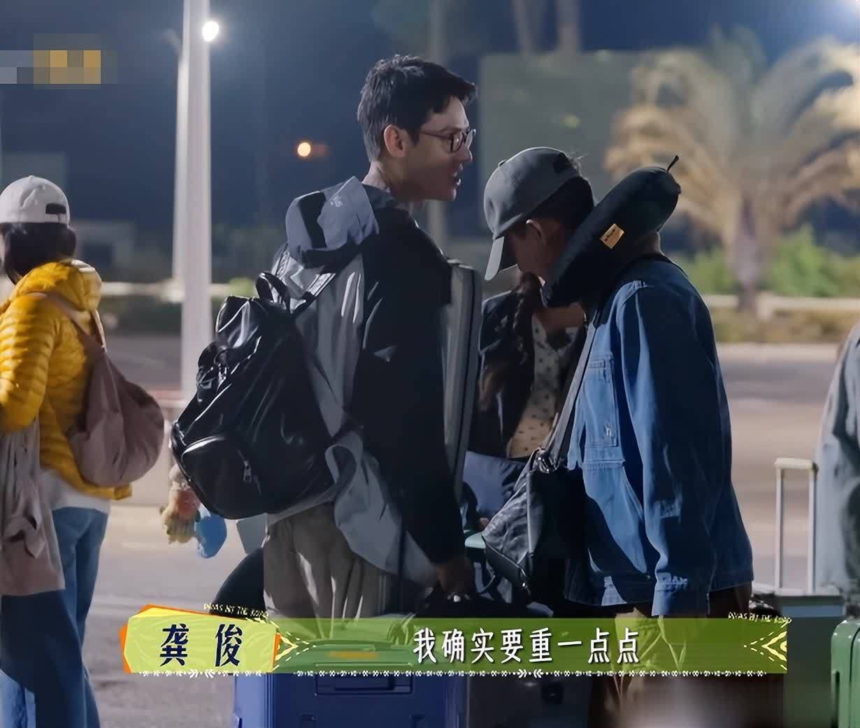 那英即是主动提议要维护的,替龚俊装了很重的鞋子、洗漱包。