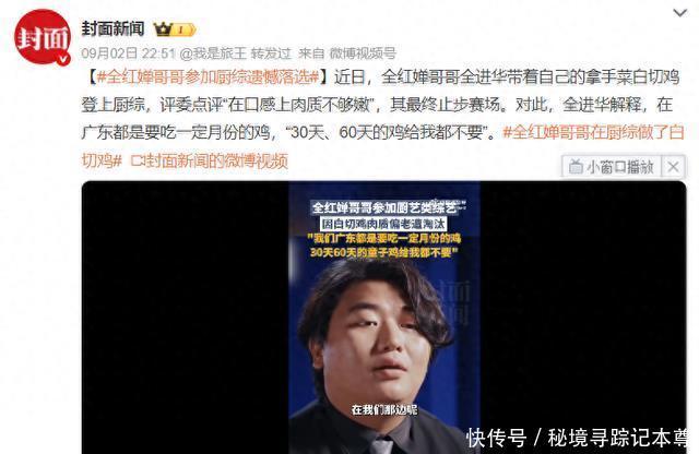 近期,中国跳水奥运冠军全红婵老迈全进华投入一档好意思食综艺节目,选手们比拼厨艺,全进华拿出了我方的绝活“白切鸡”,这亦然他们家乡沿途名菜。不外让东说念主不测的是,全进华早早被淘汰,包括岳云鹏在内的评委齐认为,全进华的“白切鸡”肉质不够心虚鲜好意思,也引起网友们热议。 岳云鹏四肢节目评委之一,进行了粗暴的点评,“它阿谁肉很硬”,随后,全进华对此也进行强势修起,他们广东湛江那里的鸡,齐要养到一定的月份,至少180天,要是是30天大概60天养的鸡,他们齐不会要。