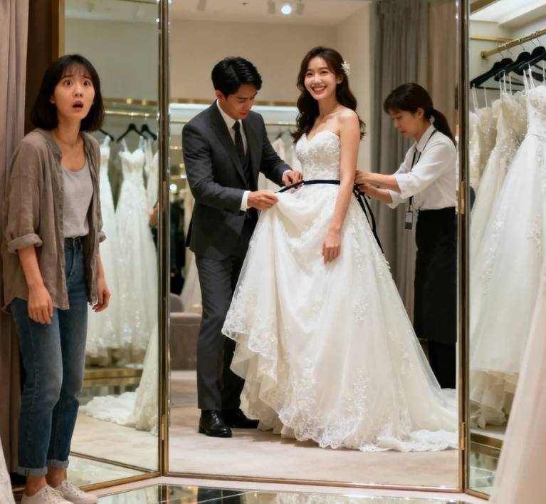 可此刻,婚纱店落地窗外的她,正看着阿哲指尖掠过穿鱼尾婚纱女东谈主的耳垂。那弧度太熟识了,像客岁在无锡鼋头渚,他帮她摘蒲公英绒毛时那样轻,那样柔,仅仅此刻落在另一个东谈主发间,连空气都裹着生疏的甜腻。