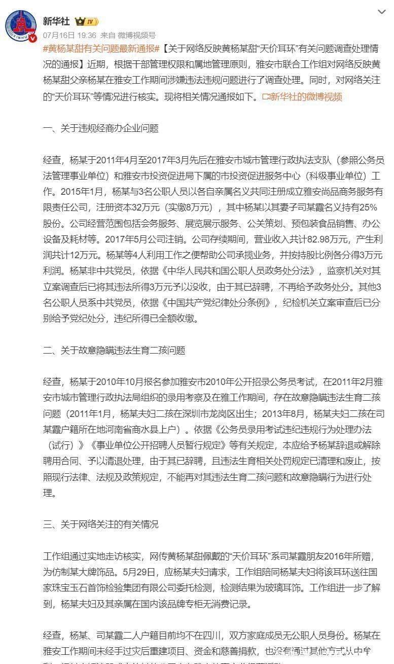 官方十月初发了通报,说黄杨钿甜的爸爸杨某确乎有点问题,他用配头的名字开了家公司,赚了三万块,还瞒着生了第二个孩子,没退步,没拿救灾款,也没动公家的钱,这些事算违规,不算大案,可网友不买账,认为三万亦然贪,守密超生就该滚开,情怀压过了事实,越说越狠,越传越歪。