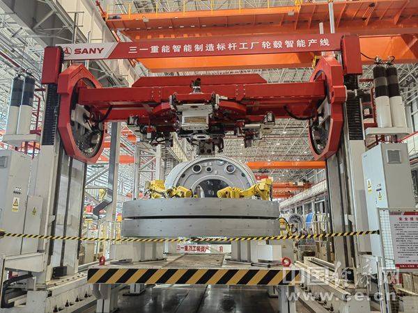 12月8日至10日,“铭记叮咛 逐梦深蓝”网络主题宣传动作采访团走进青岛、烟台、威海、日照等地。图为三一重能智能制造标杆工场轮毂智能产线。(中国经济网记者 年巍/摄)