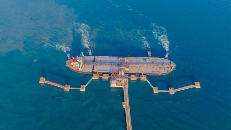 石化原辅料的船舶靠泊国投洋浦油储船埠。邓晓龙摄