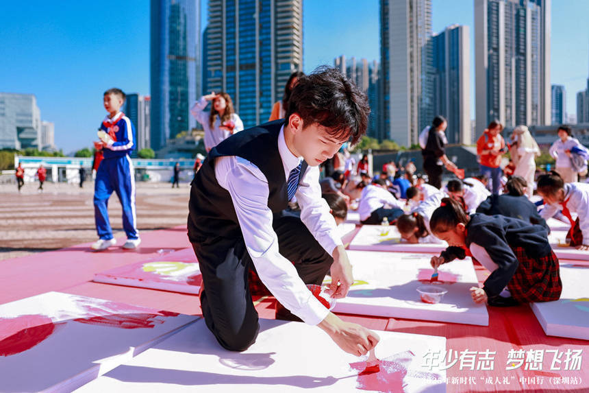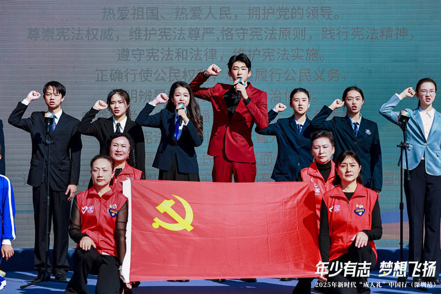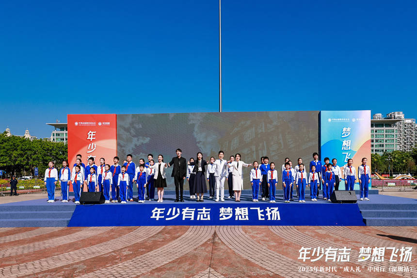12月21日上昼,千余名来自粤港澳三地的青少年代表皆聚深圳宝安海滨广场,在沉静而强烈的氛围中,共同进入以“少小有志,空想飞扬”为主题的“2025年新期间‘成东说念主礼’中国行(深圳站)”行为。