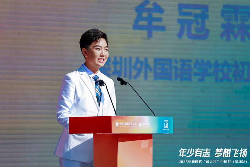 来自深圳异邦语学校初中部的牟冠霖同学在发言中动情地说:“‘成东说念主’二字,重若千钧。它记号着咱们从‘小我’的温床走向‘大我’的郊野。”他共享了我方手脚深圳市暖热行径公益基金会·后生率领力基金发起东说念主的阅历,并援用“一滴水只须融入江河,才调取得永不干涸的力量”,敕令同龄东说念主将个东说念主成长汇入期间激流。