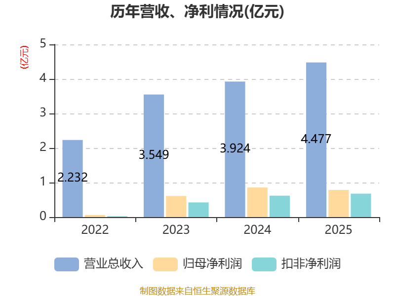 中证智能财讯易想维(688816)4月18日流露2025年年度诠释。2025年,公司终了商业总收入4.48亿元,同比增长14.08%;归母净利润7845.91万元,同比下落8.39%;扣非净利润6782.48万元,同比增长9.57%;诡计手脚产生的现款流量净额为7715.99万元,同比增长197.37%;诠释期内,易想维基本每股收益为1.05元,加权平均净钞票收益率为15.05%。公司2025年度分拨预案为:拟向整体鼓励每10股派现2.4元(含税)。